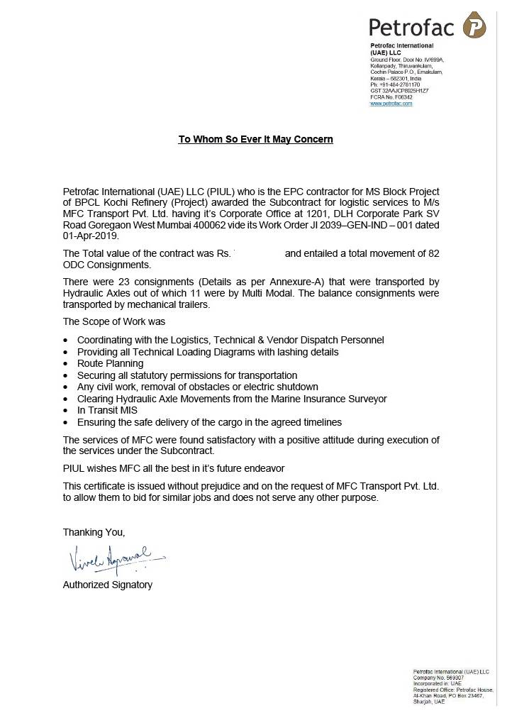 Backed by an in-depth understanding of the Indian logistics landscape, we are uniquely equipped to handle even the most challenging transportation scenarios. From oversized and overweight cargo to navigating rugged terrains and complex regulatory environments, MFC ensures safe, efficient, and on-time delivery—every time.